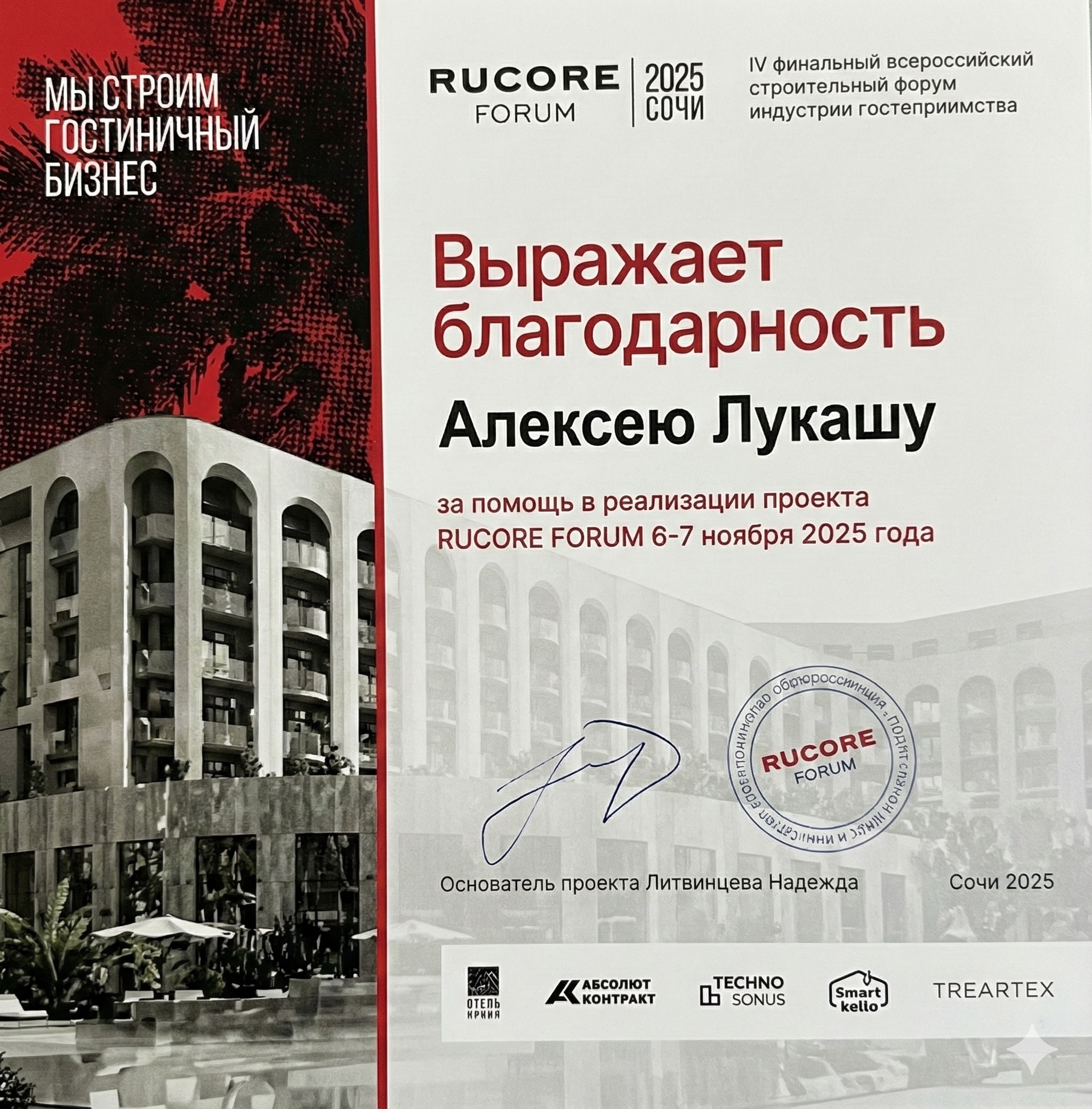 В июне 2012 года, в тот период Генеральному директору компании ООО «Интер Строй » господину Лукашу А.А., выпала честь принимать поздравления. За успешное осуществление проекта «Courtyard Irkutsk City Center», наша команда награждена премией «Золотой Кирпич» в номинации «Гостиницы в регионах России».